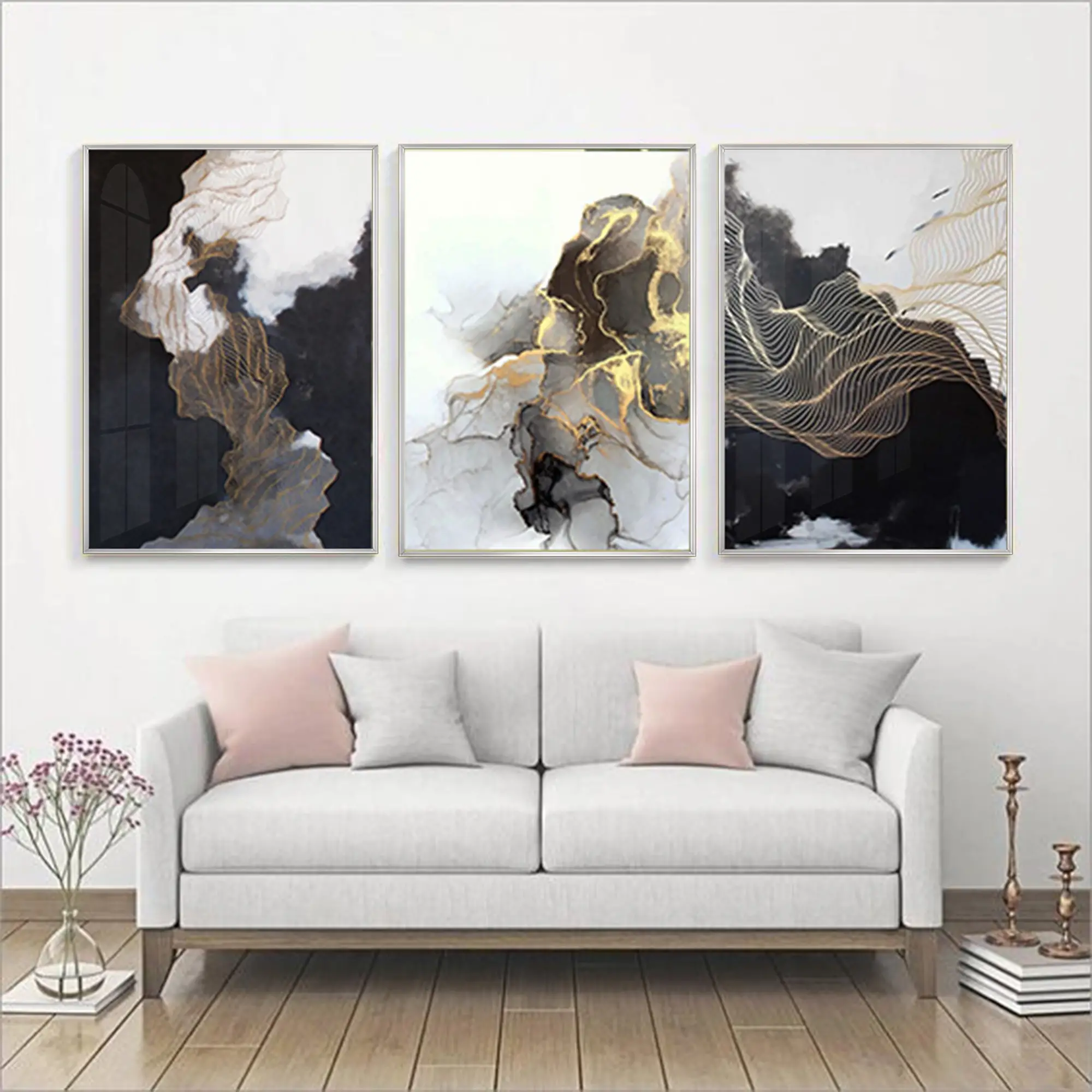 Siyah Ve Gold Mermer Desenli Metal Çerçeveli Tablo Seti Gümüş Hakkında