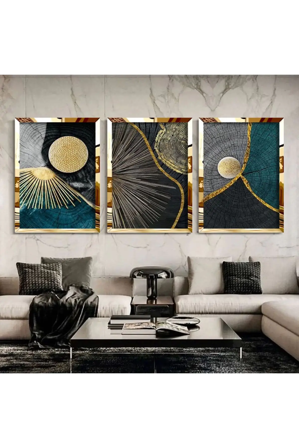 Soyut Ağaç Kütükleri Gold Pleksi 3'lü Çerçeveli Tablo Seti Hakkında