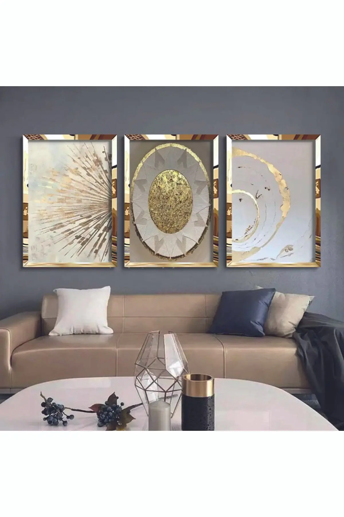 Soyut Altın Detaylar Gold Pleksi 3'lü Çerçeveli Tablo Hakkında