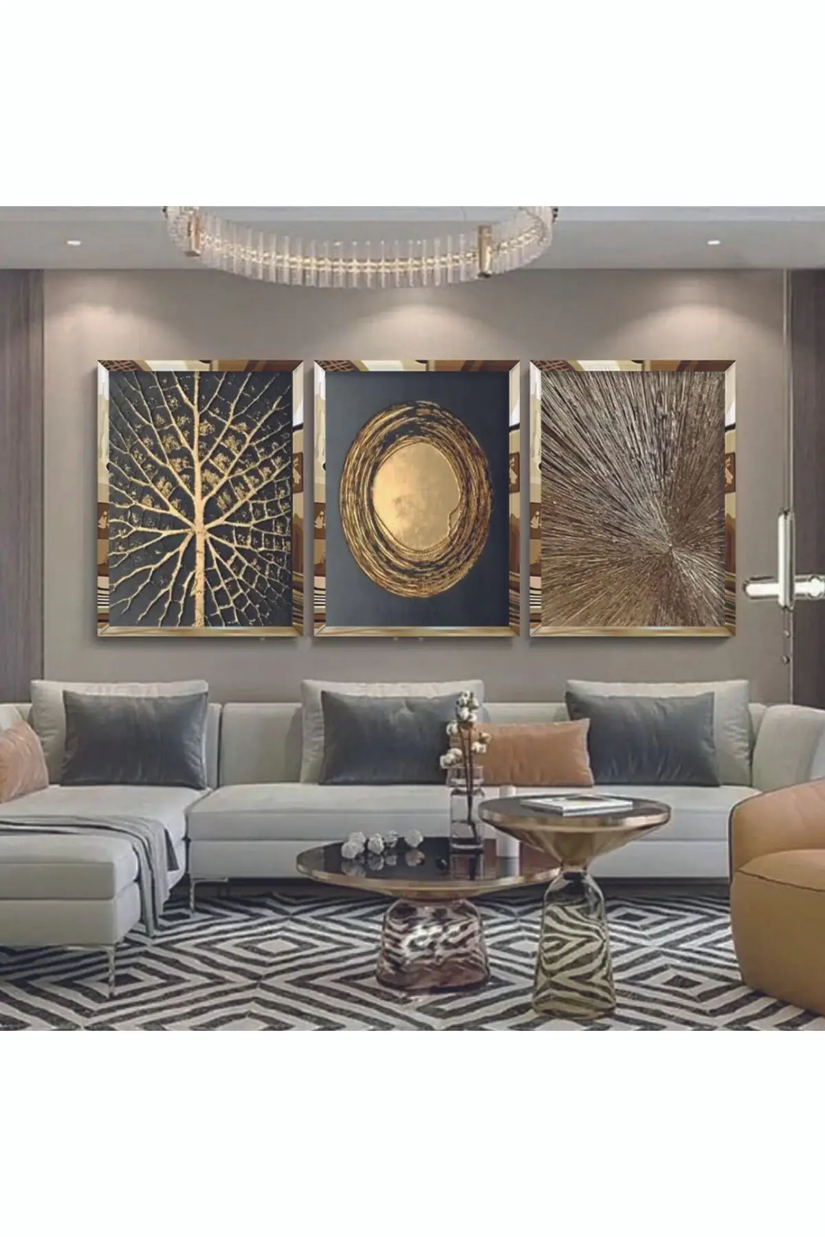 Soyut Altın Sanatı 3'lü Pleksi Tablo Seti Hakkında