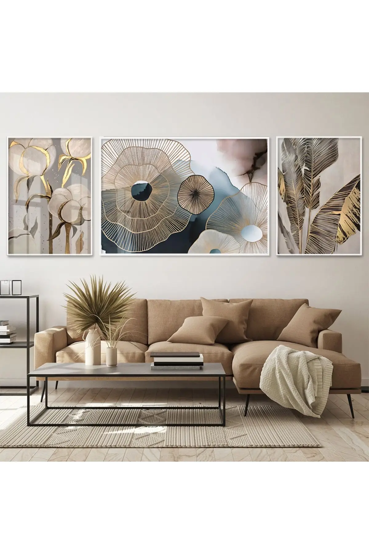 Soyut Botanik Silüetler; Altın Vurgulu Metal Çerçeveli Tablo Hakkında