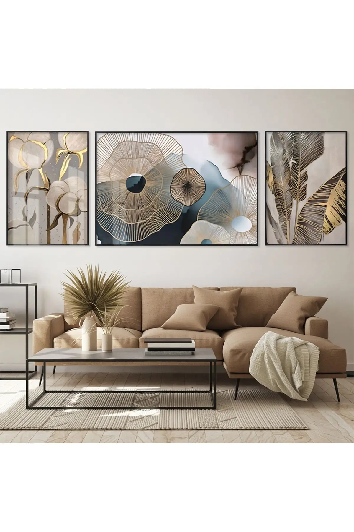 Soyut Botanik Silüetler; Altın Vurgulu Metal Çerçeveli Tablo Hakkında