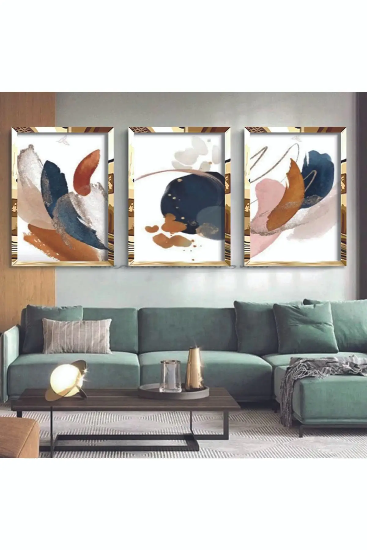 Soyut Pastel Sulu Boya Konsept Gold Ayna Çerçeveli Tablo Takımı Hakkında