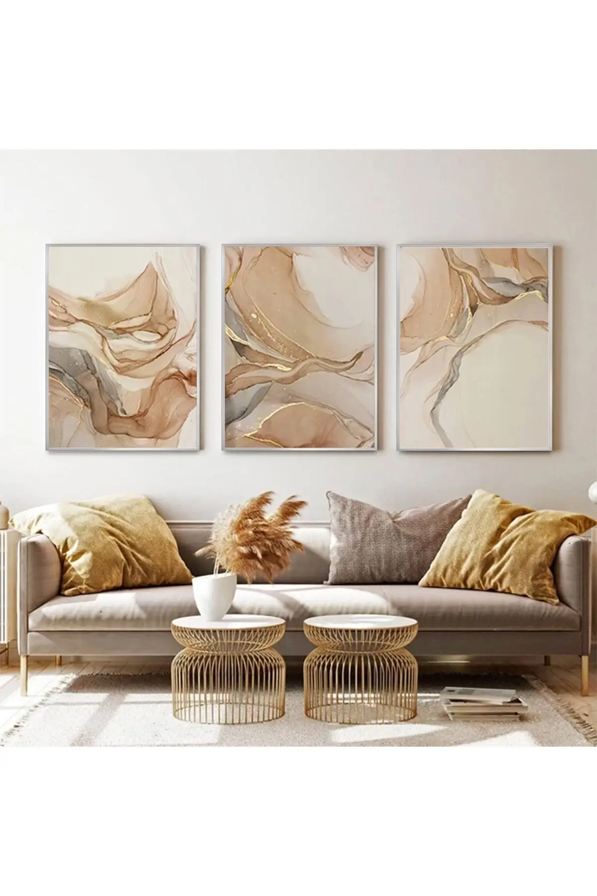 Soyut Sanatın Altın Yansımaları: Üçlü Metal Çerçeveli Tablo Takımı Hakkında