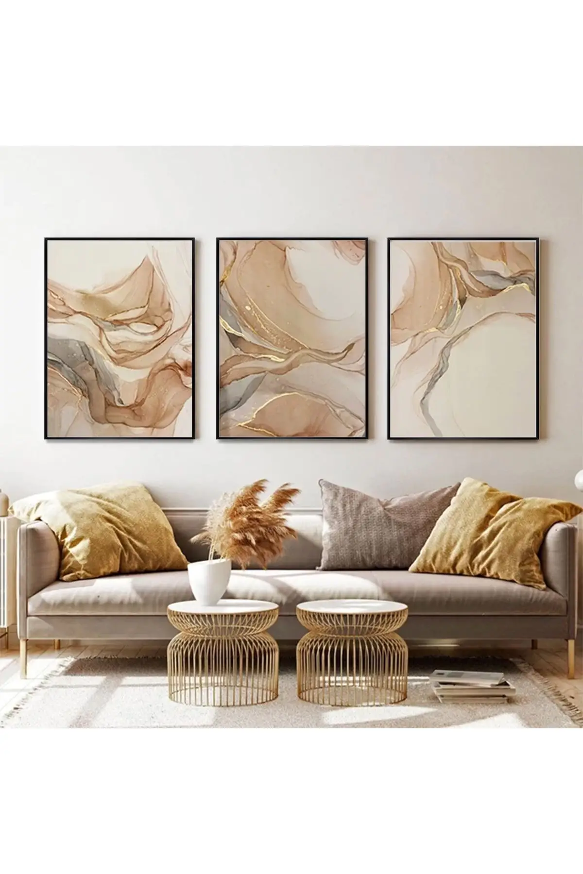Soyut Sanatın Altın Yansımaları: Üçlü Metal Çerçeveli Tablo Takımı Hakkında