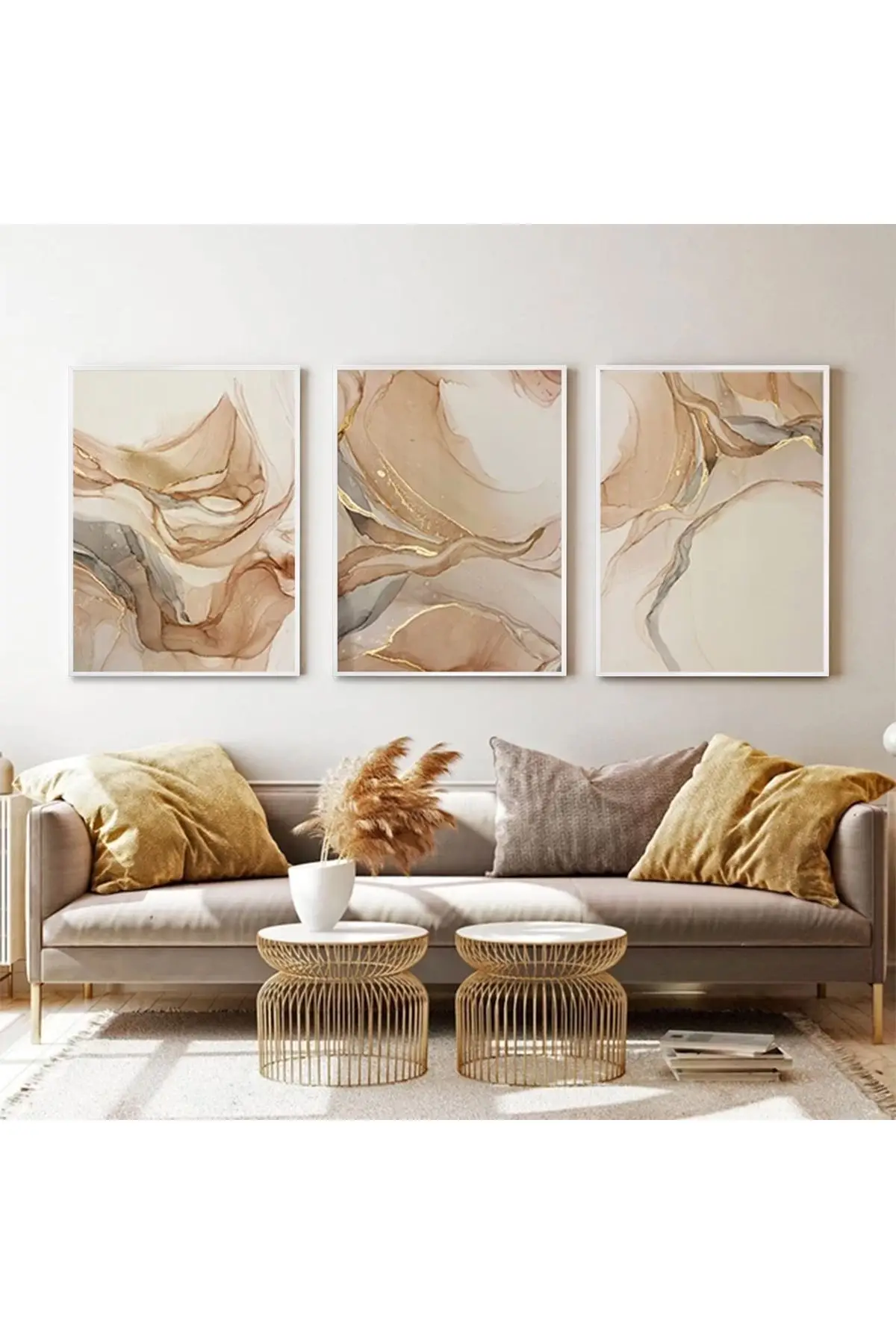 Soyut Sanatın Altın Yansımaları: Üçlü Metal Çerçeveli Tablo Takımı Hakkında