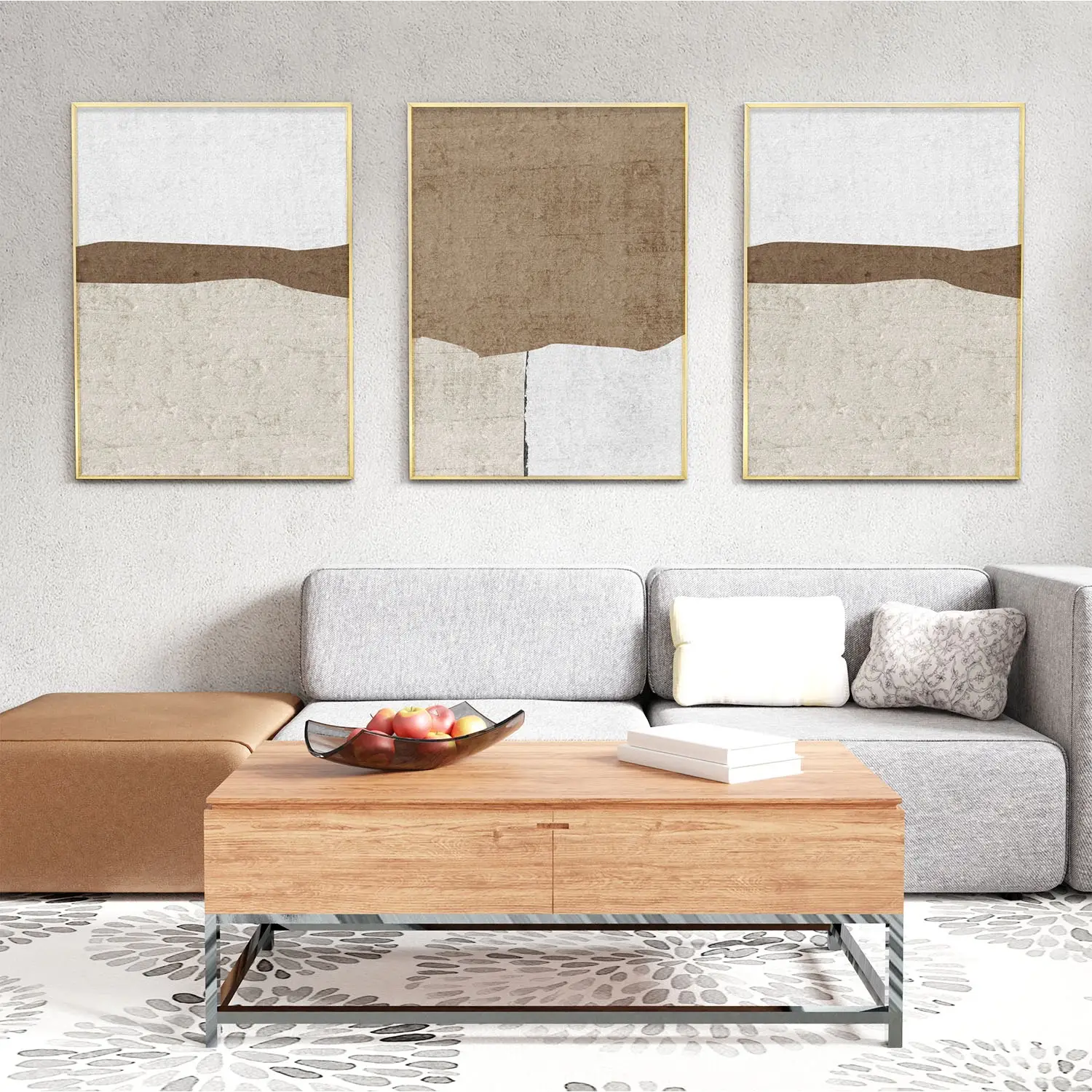 Soyut Tasarım Desenli Üçlü Metal Çerçeveli Tablo Seti