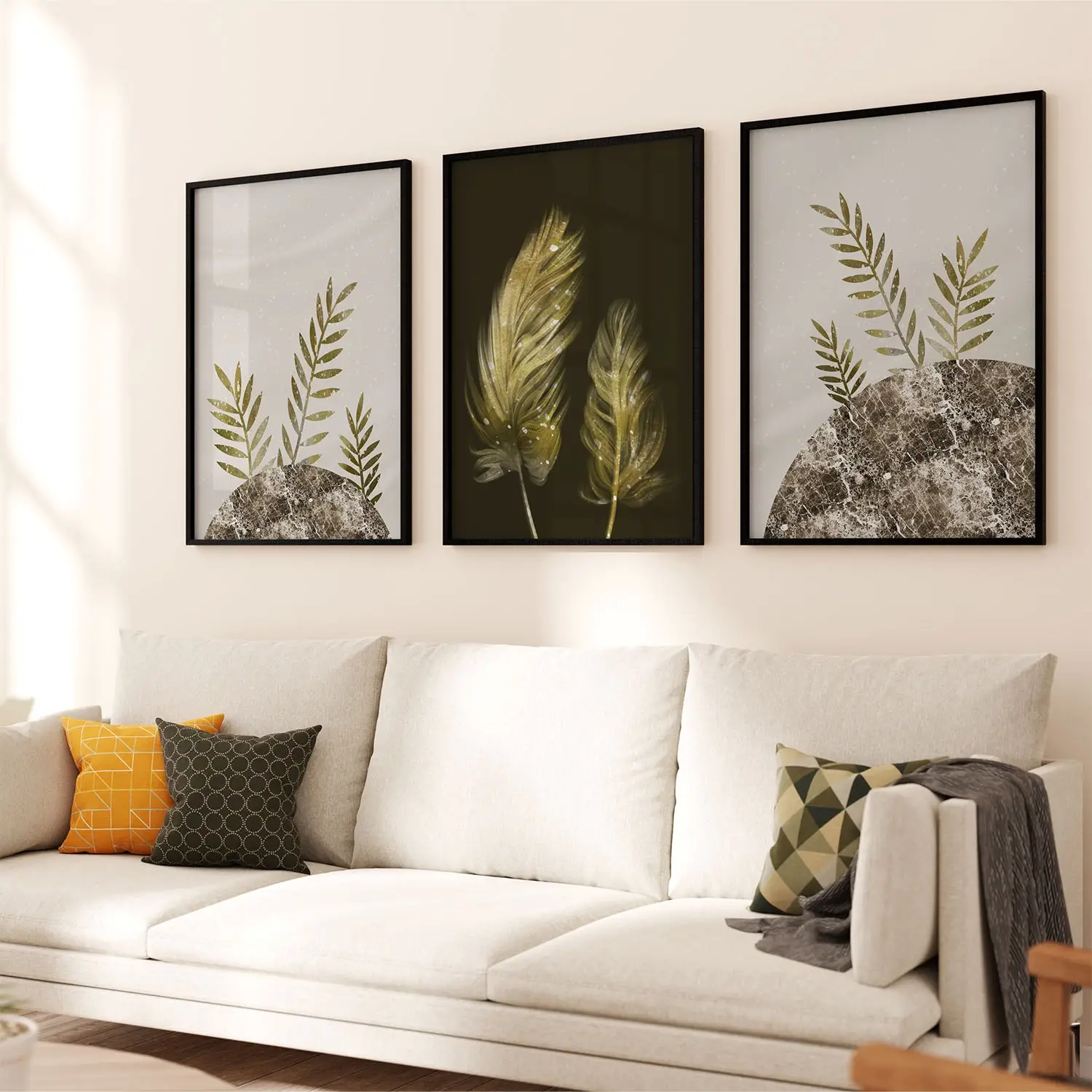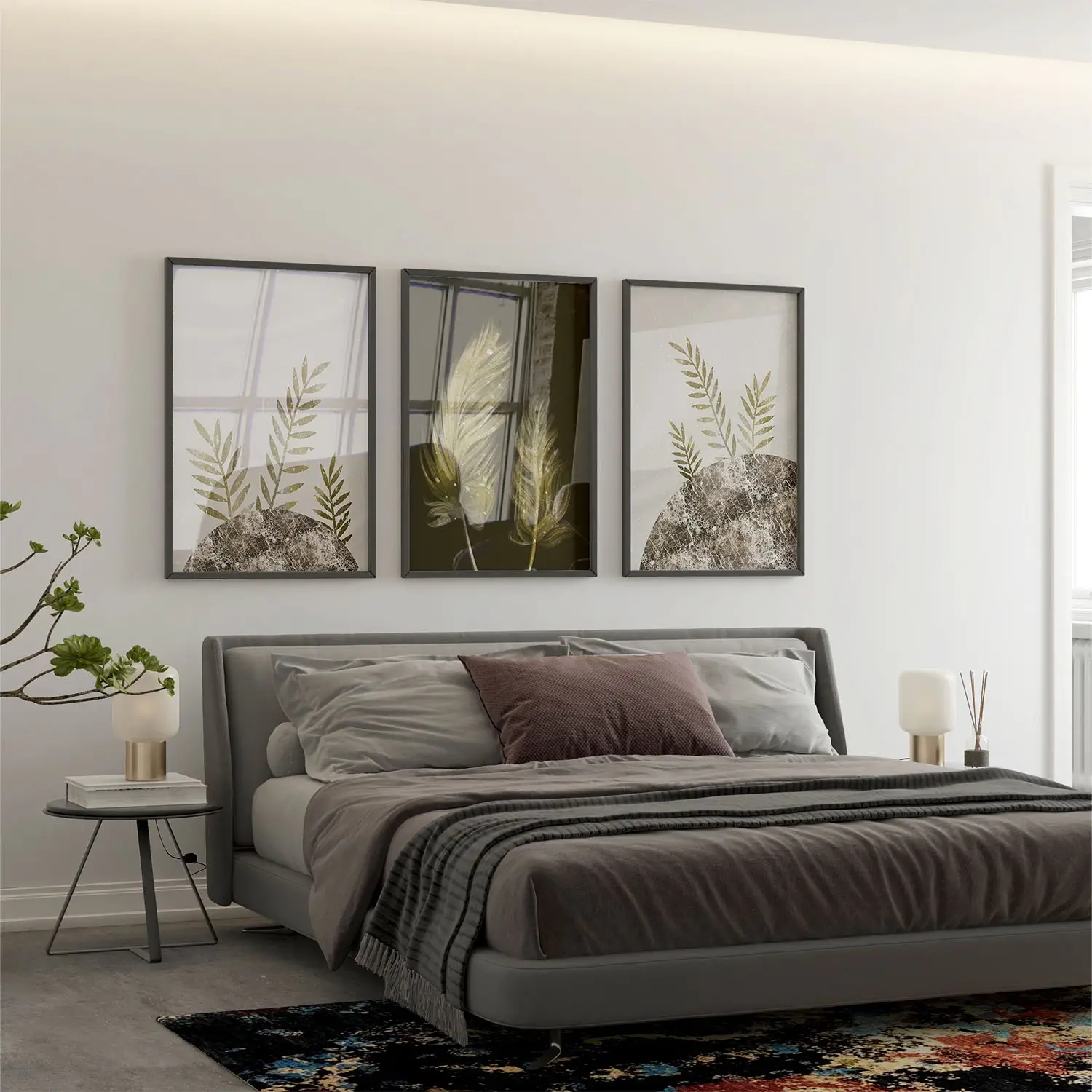 Soyut Yapraklar Desenli Üçlü Metal Çerçeveli Tablo Seti Hakkında
