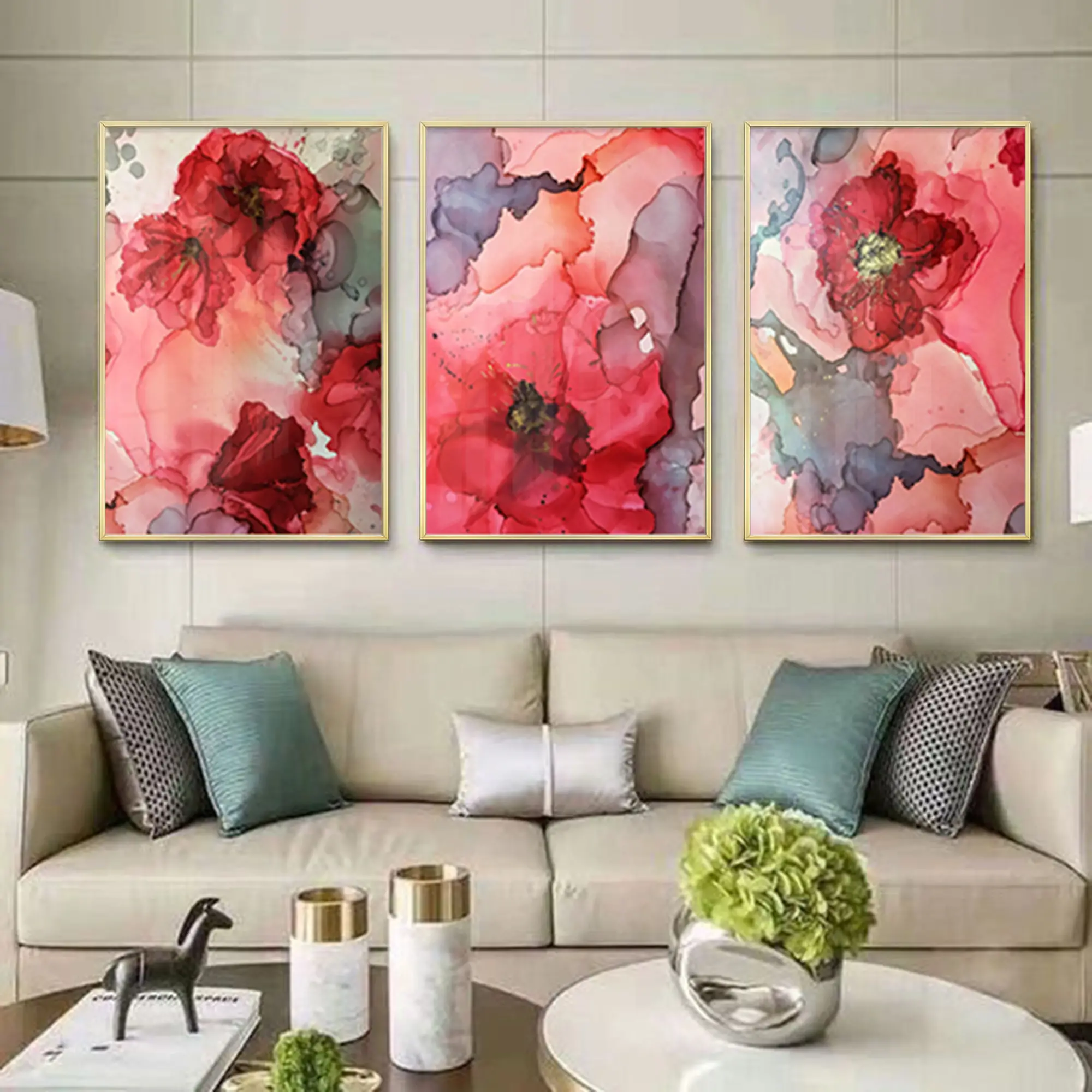 Sulu Boya Efektli Çiçek Desenli Metal Çerçeveli Tablo Seti Altın Hakkında