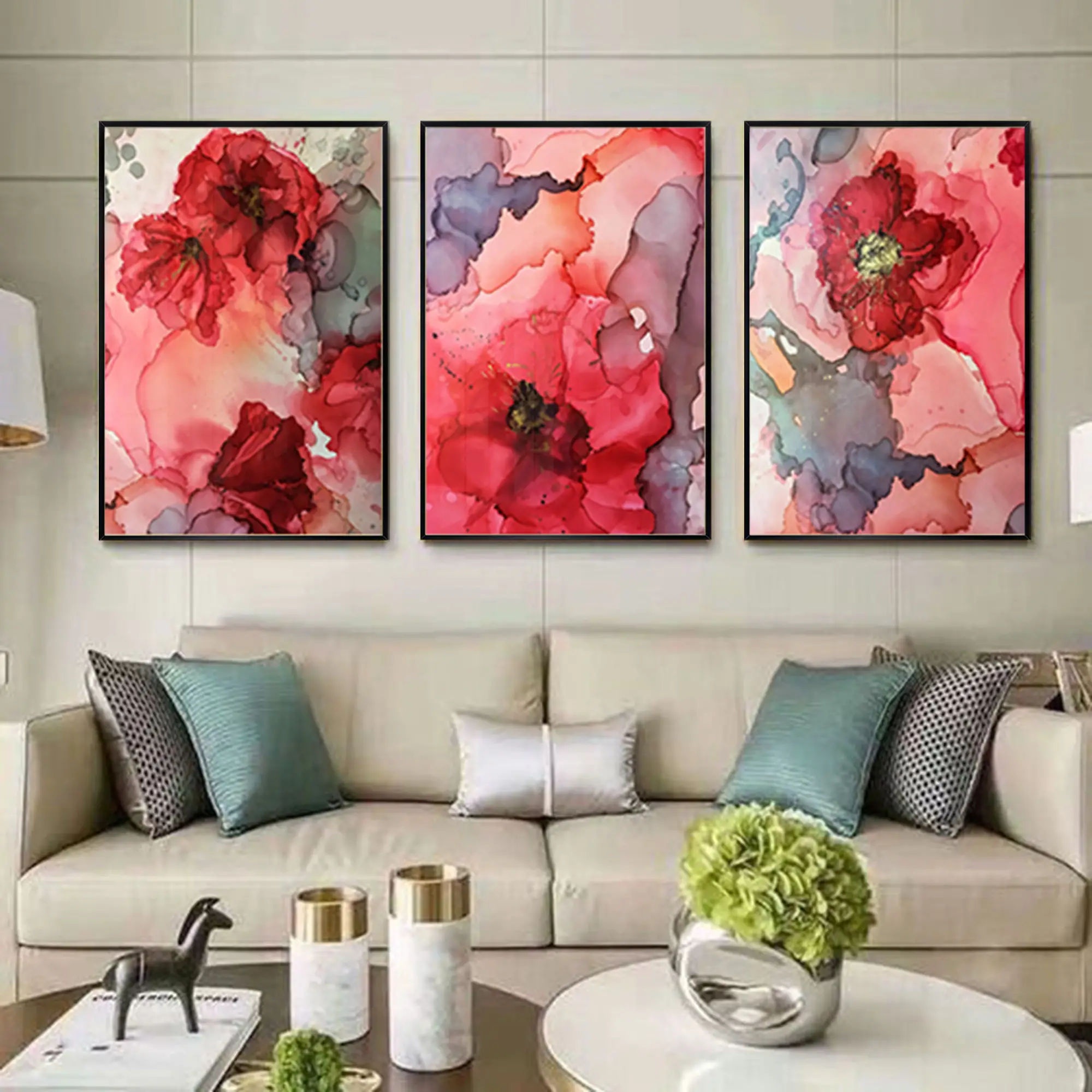Sulu Boya Efektli Çiçek Desenli Metal Çerçeveli Tablo Seti Siyah Hakkında