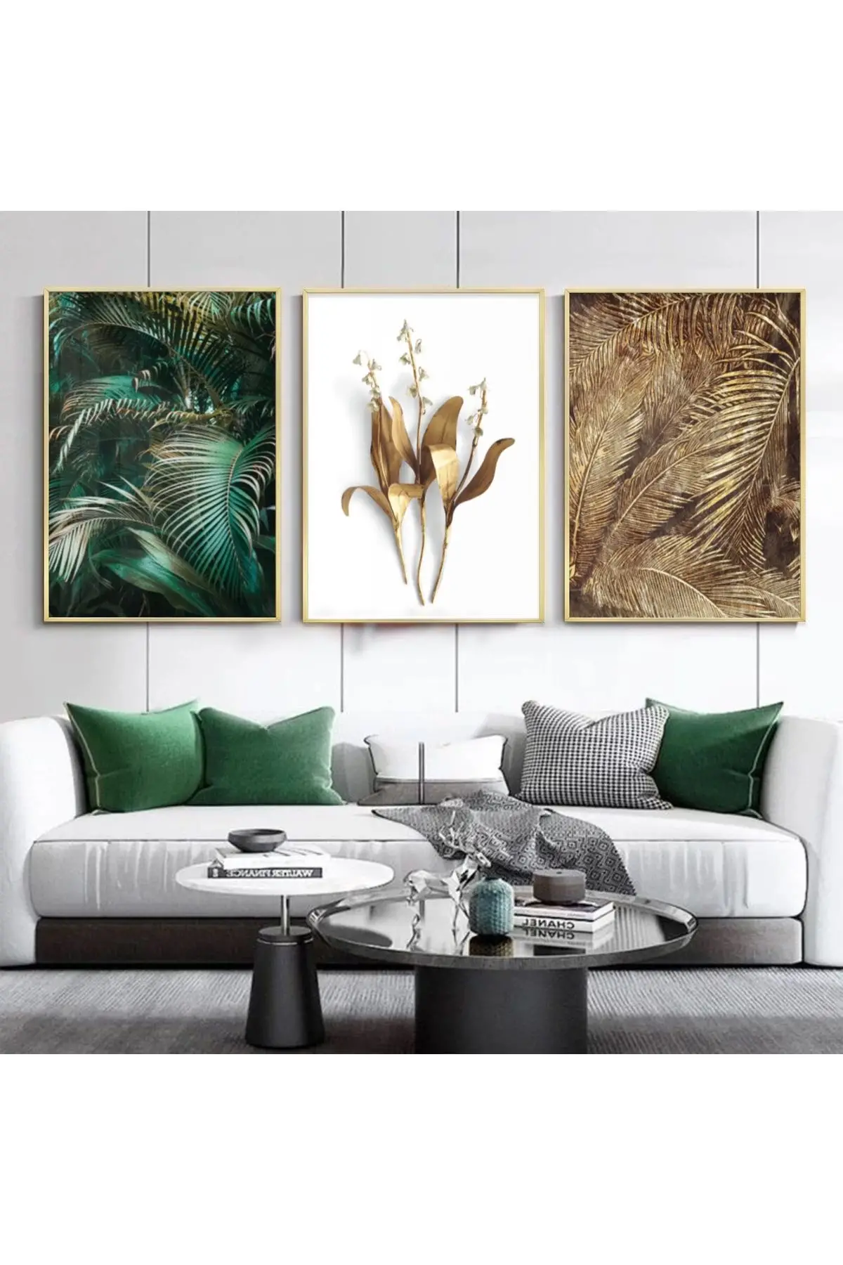 Tropik Yapraklar Ve Altın Dokunuşlar Metal Çerçeveli Tablo Seti Hakkında