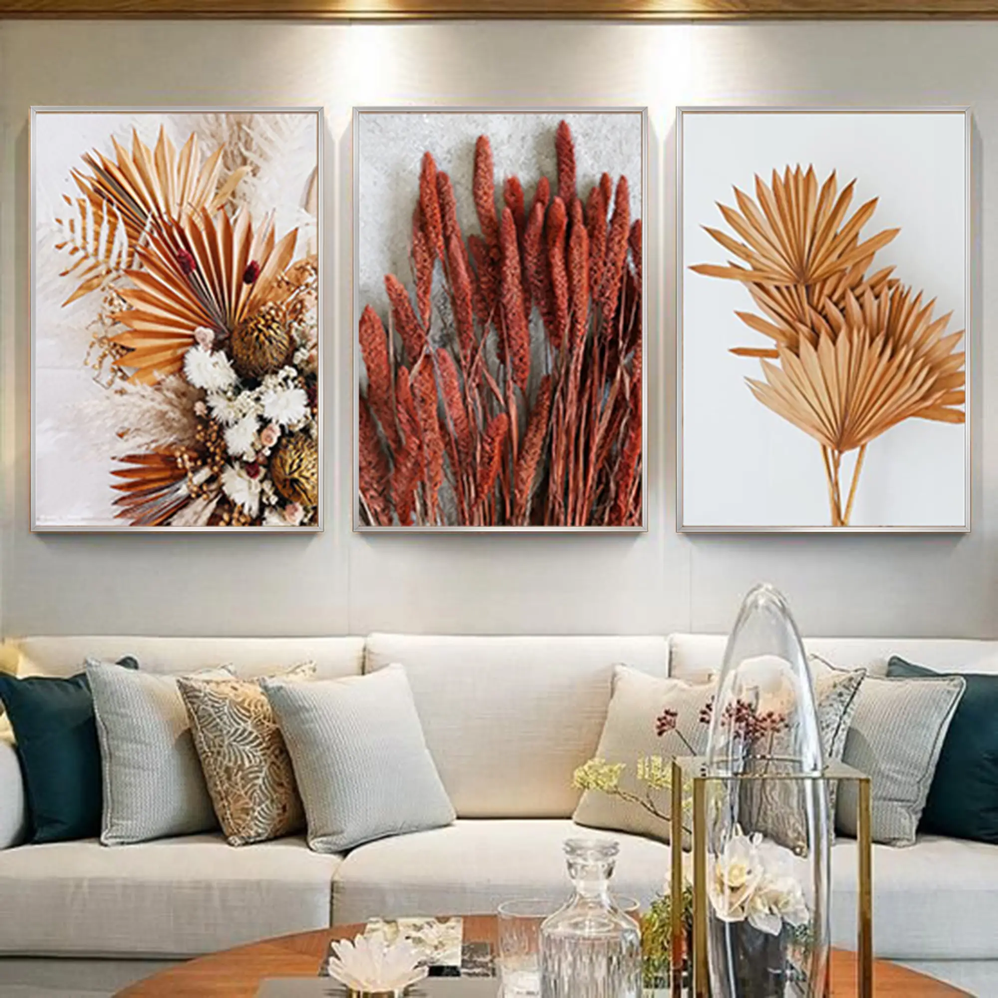 Turuncu Çiçekler Desenli Metal Çerçeveli Tablo Seti Gümüş Hakkında