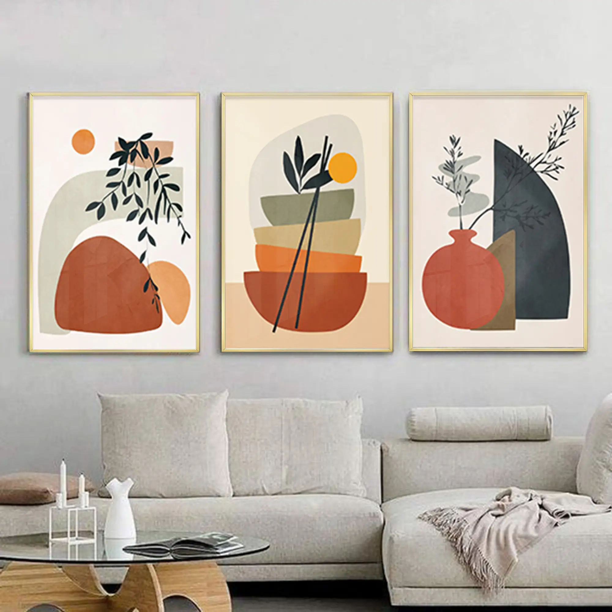 Turuncu Ve Krem Detaylı Metal Çerçeveli Tablo Seti Altın Hakkında
