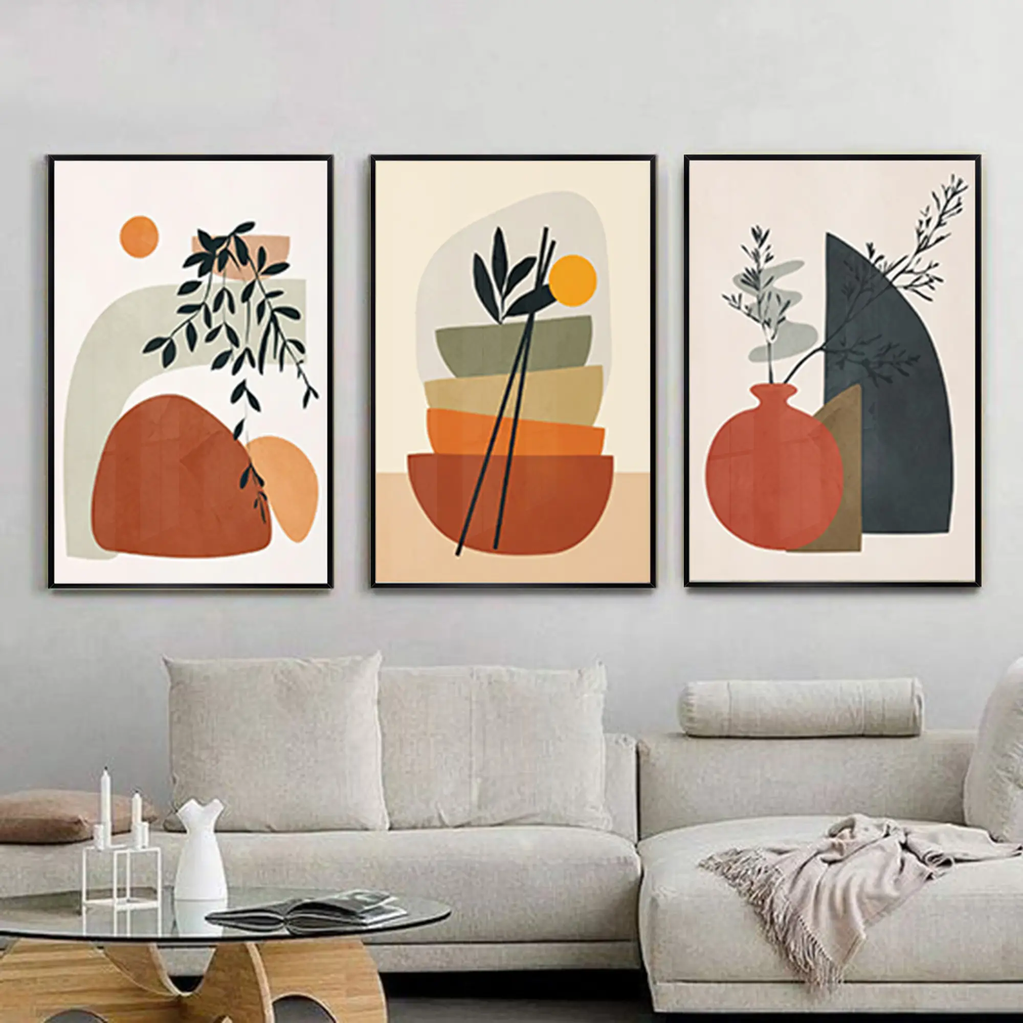 Turuncu Ve Krem Detaylı Metal Çerçeveli Tablo Seti Siyah Hakkında