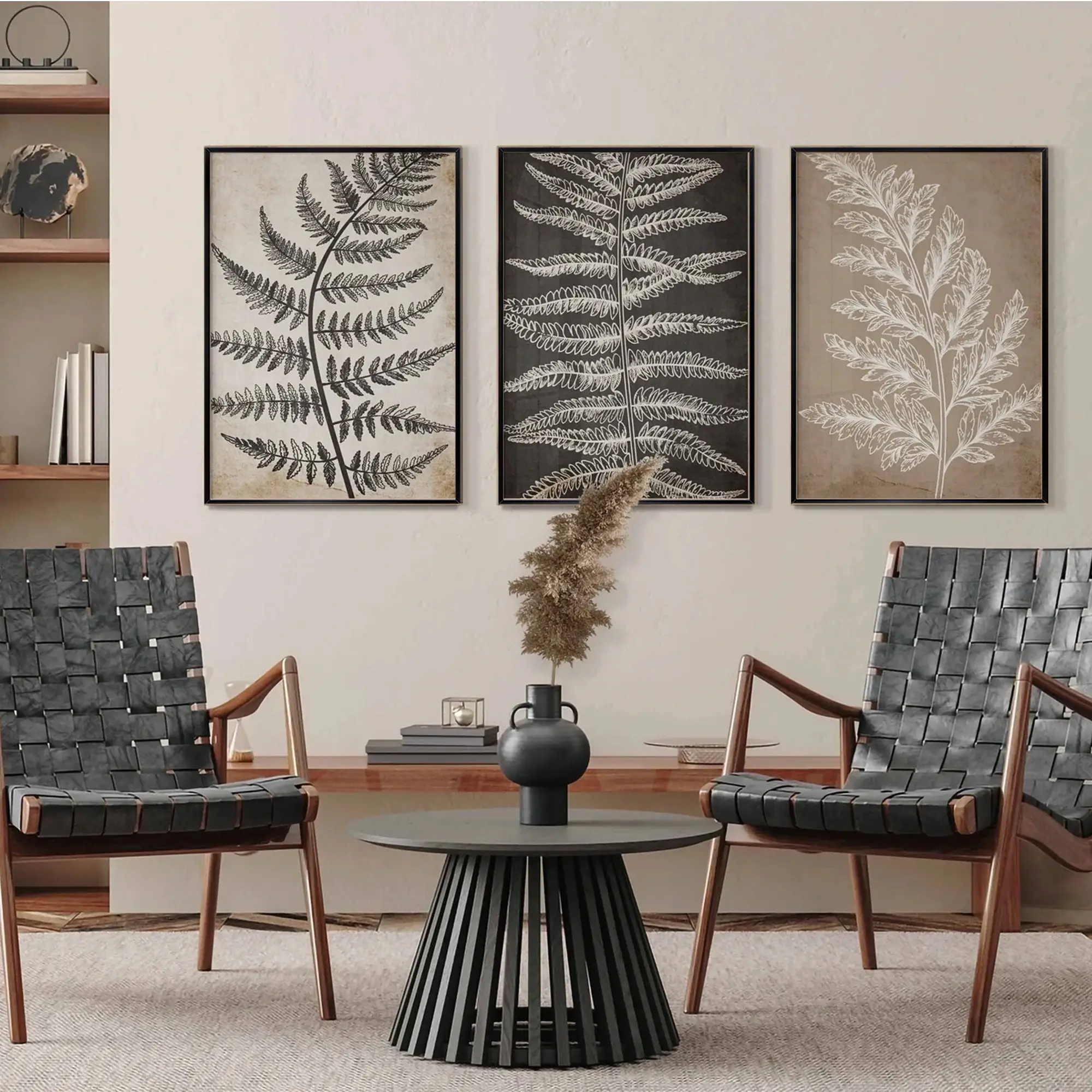 Vintage Siyah-Beyaz Yaprak Desenli Minimalist Siyah Metal Çerçeveli Cam Tablo Hakkında