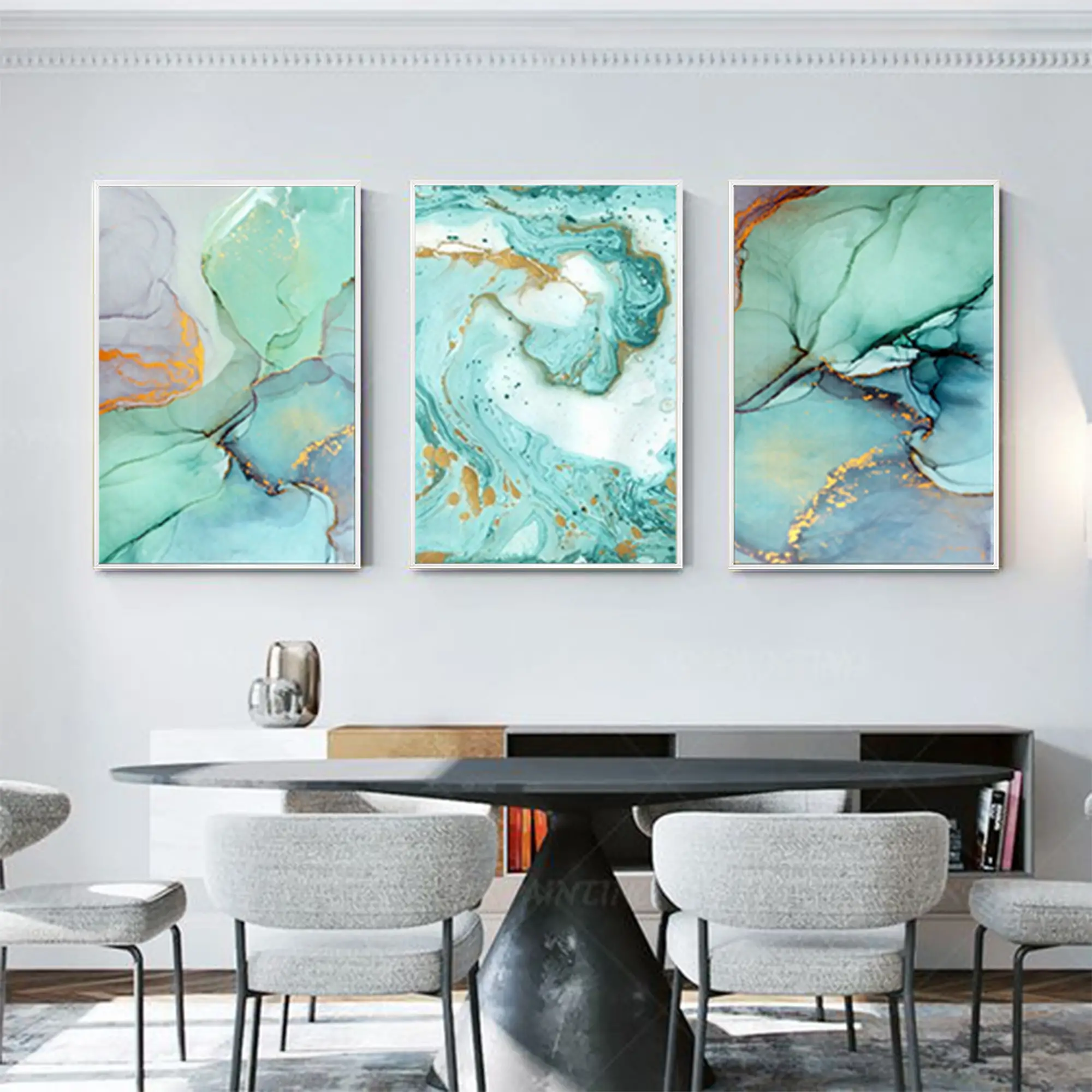 Yeşil-Mavi Soyut Desenli Metal Çerçeveli Tablo Seti Beyaz Hakkında