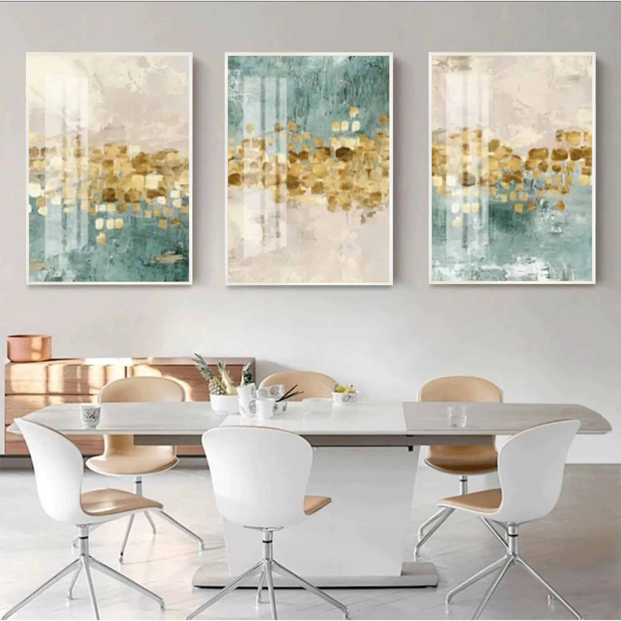 Yeşil Ve Gold Detaylı Metal Çerçeveli Tablo Seti Beyaz Hakkında