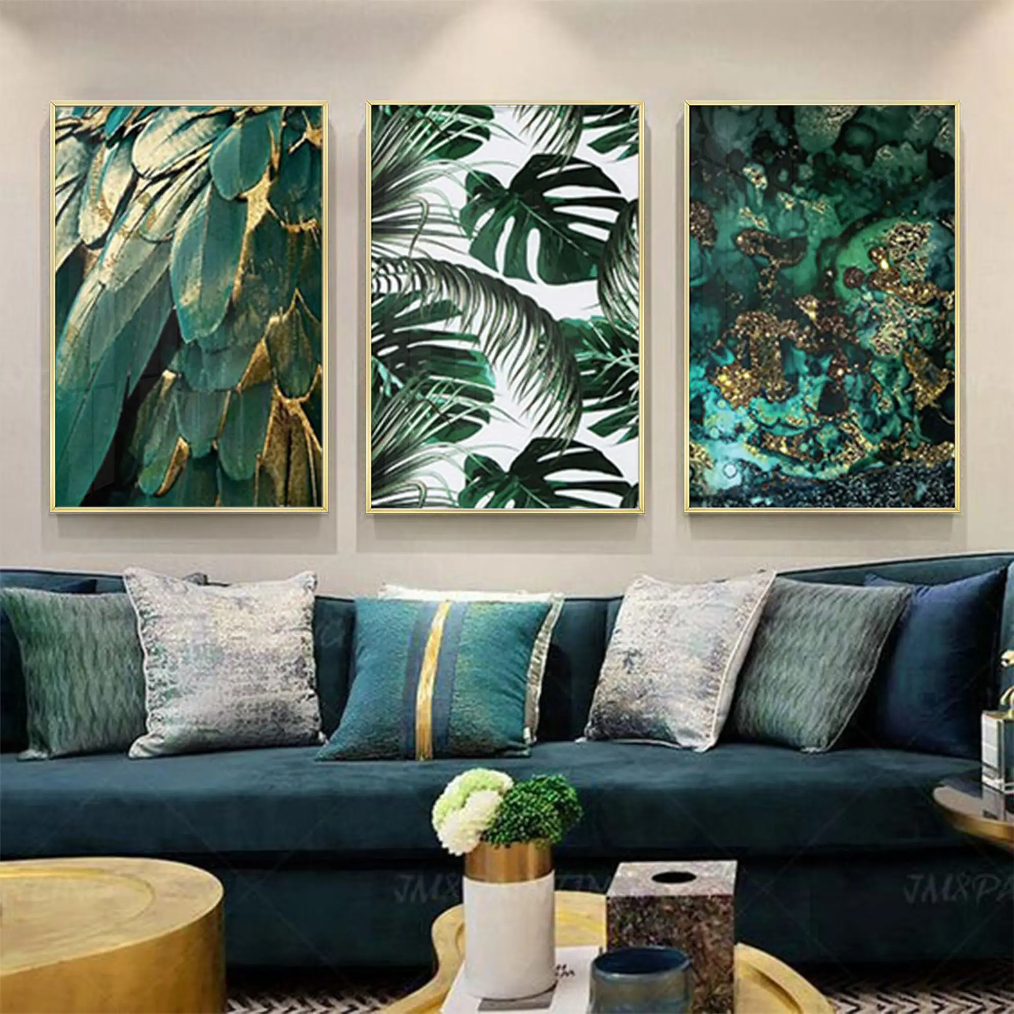 Yeşil Yapraklar Tasarım Metal Çerçeveli Tablo Seti Altın Hakkında