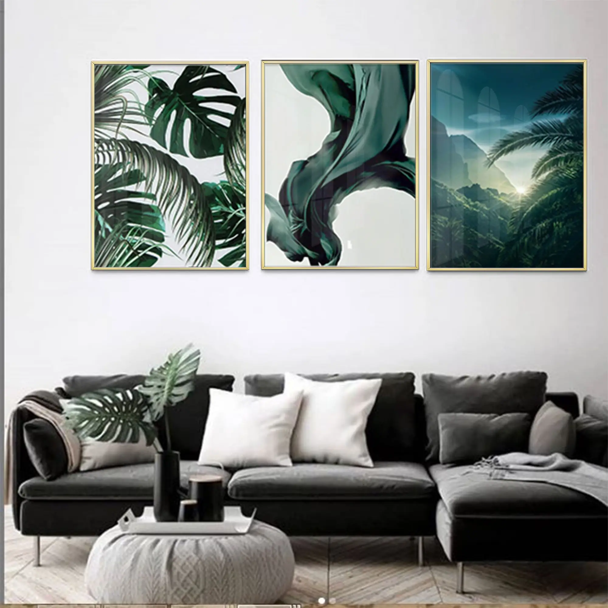 Yeşil Yapraklar Tasarım Metal Çerçeveli Tablo Seti Altın Hakkında