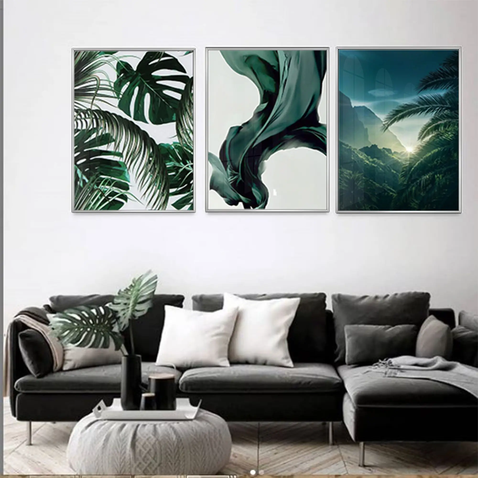 Yeşil Yapraklar Tasarım Metal Çerçeveli Tablo Seti Gümüş Hakkında