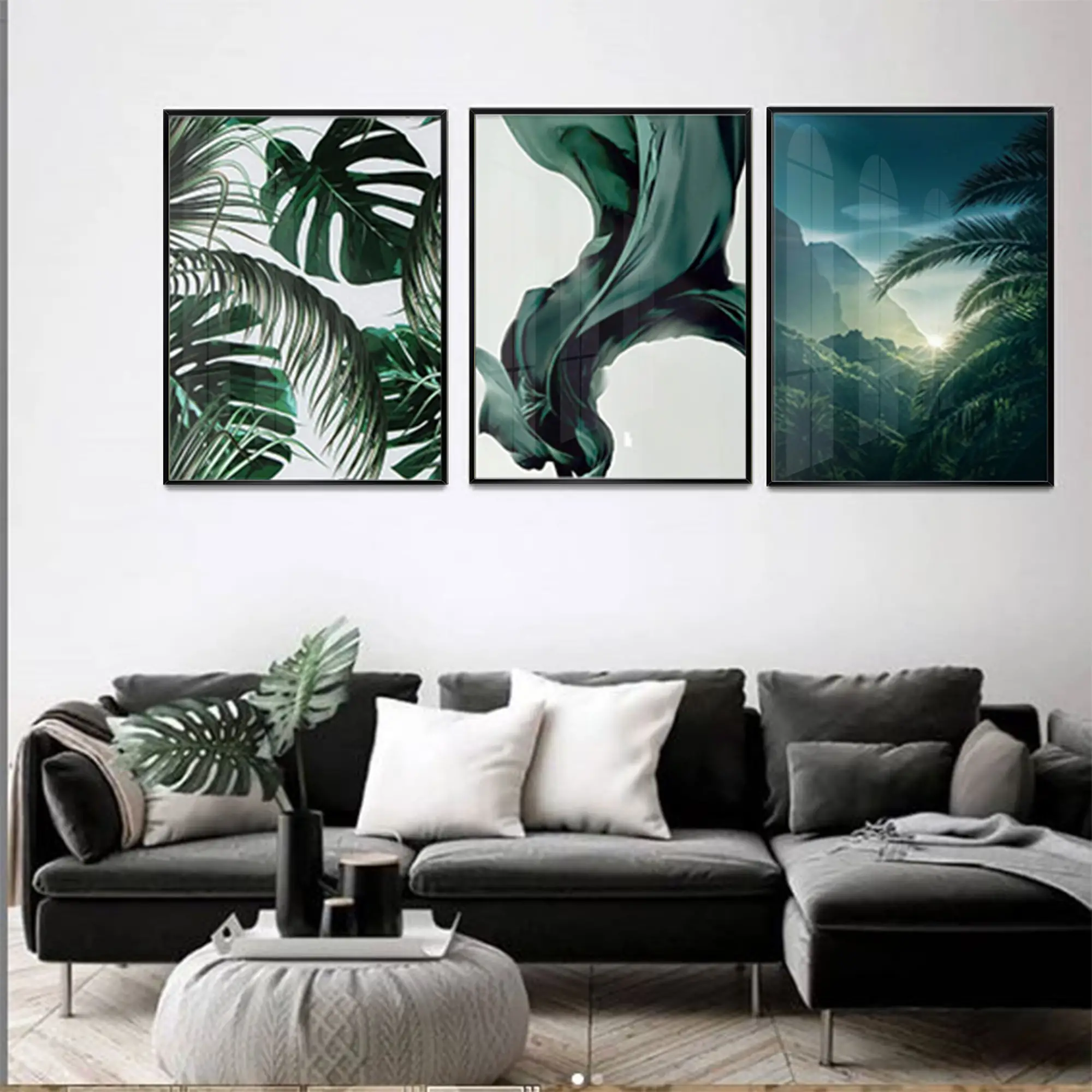 Yeşil Yapraklar Tasarım Metal Çerçeveli Tablo Seti Siyah Hakkında