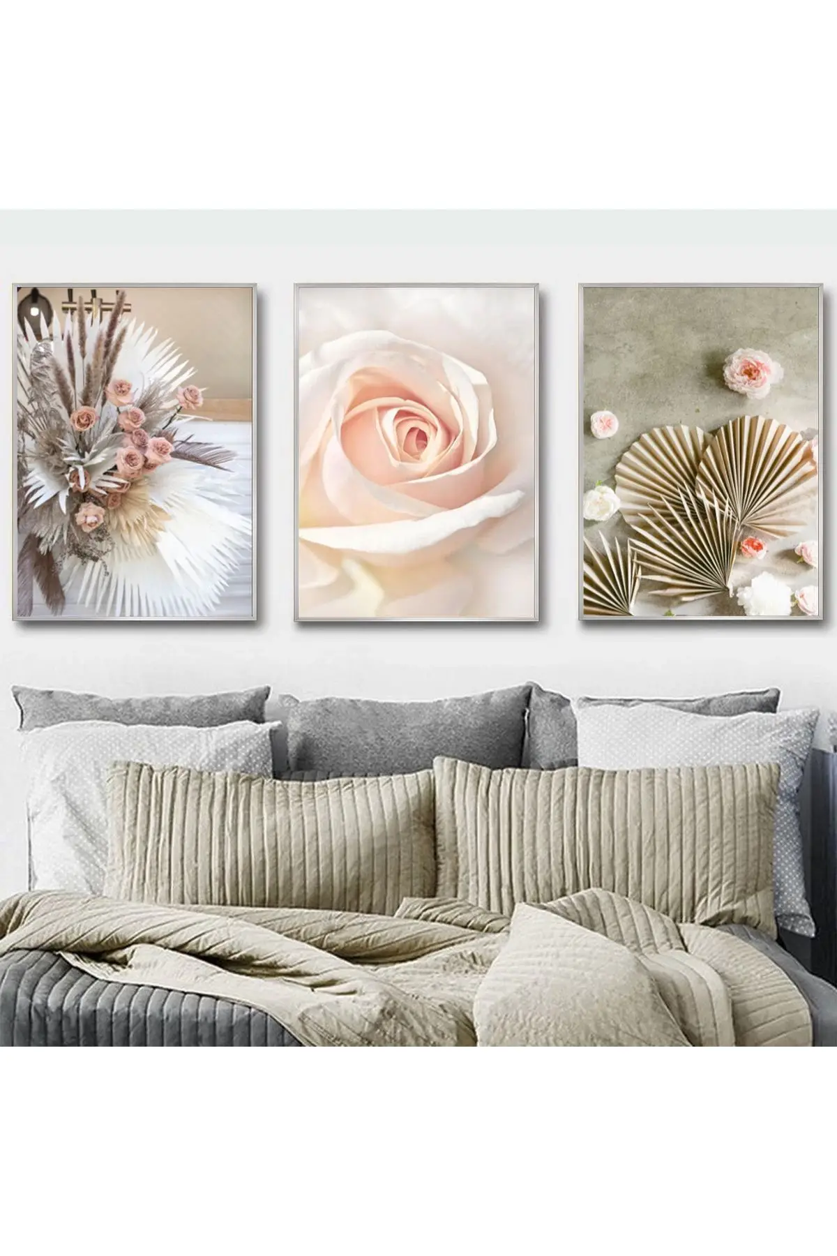 Zarafetin Üçlemesi: Pastel Rüya Çiçekleri Ve Doğanın Sanatı Metal Çerçeveli 3'lü Tablo Seti Hakkında