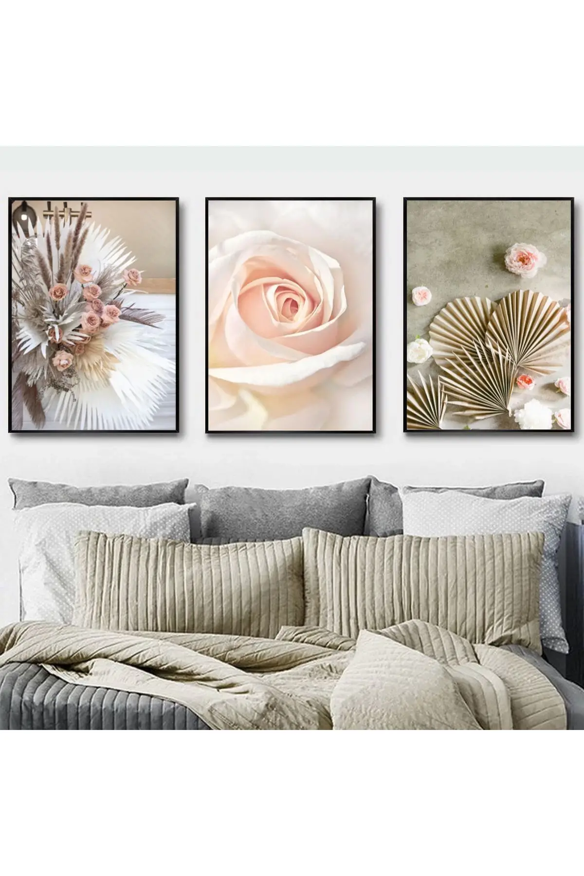 Zarafetin Üçlemesi: Pastel Rüya Çiçekleri Ve Doğanın Sanatı Metal Çerçeveli 3'lü Tablo Seti Hakkında