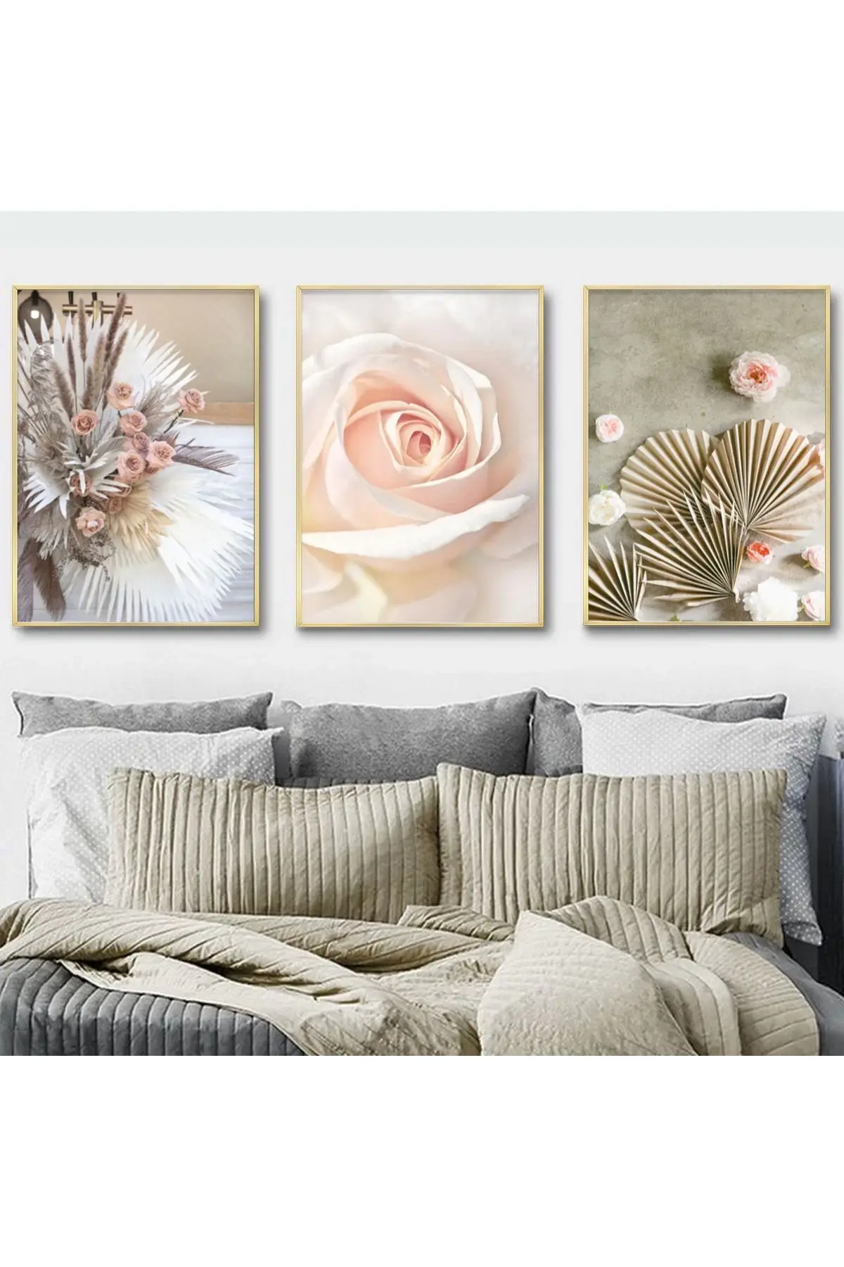 Zarafetin Üçlemesi: Pastel Rüya Çiçekleri Ve Doğanın Sanatı Metal Çerçeveli 3'lü Tablo Seti Hakkında