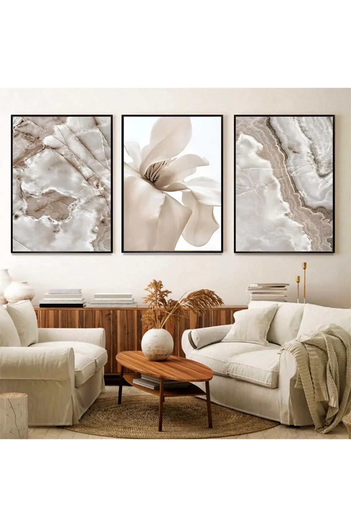 Zerafetin Sessizliği: Beyaz Çiçek Ve Mermer Üçlü Metal Çerçeveli Tablo Seti Hakkında