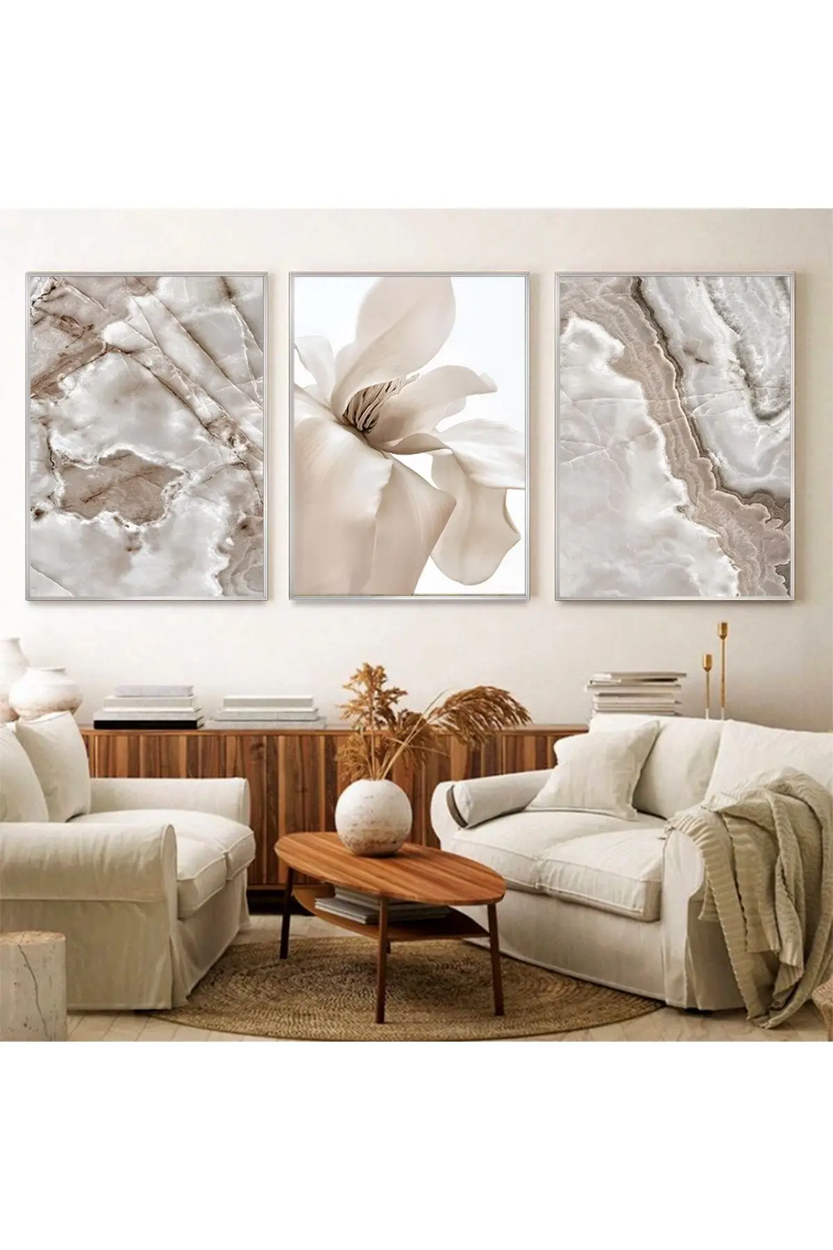 Zerafetin Sessizliği: Beyaz Çiçek Ve Mermer Üçlü Metal Çerçeveli Tablo Seti Hakkında